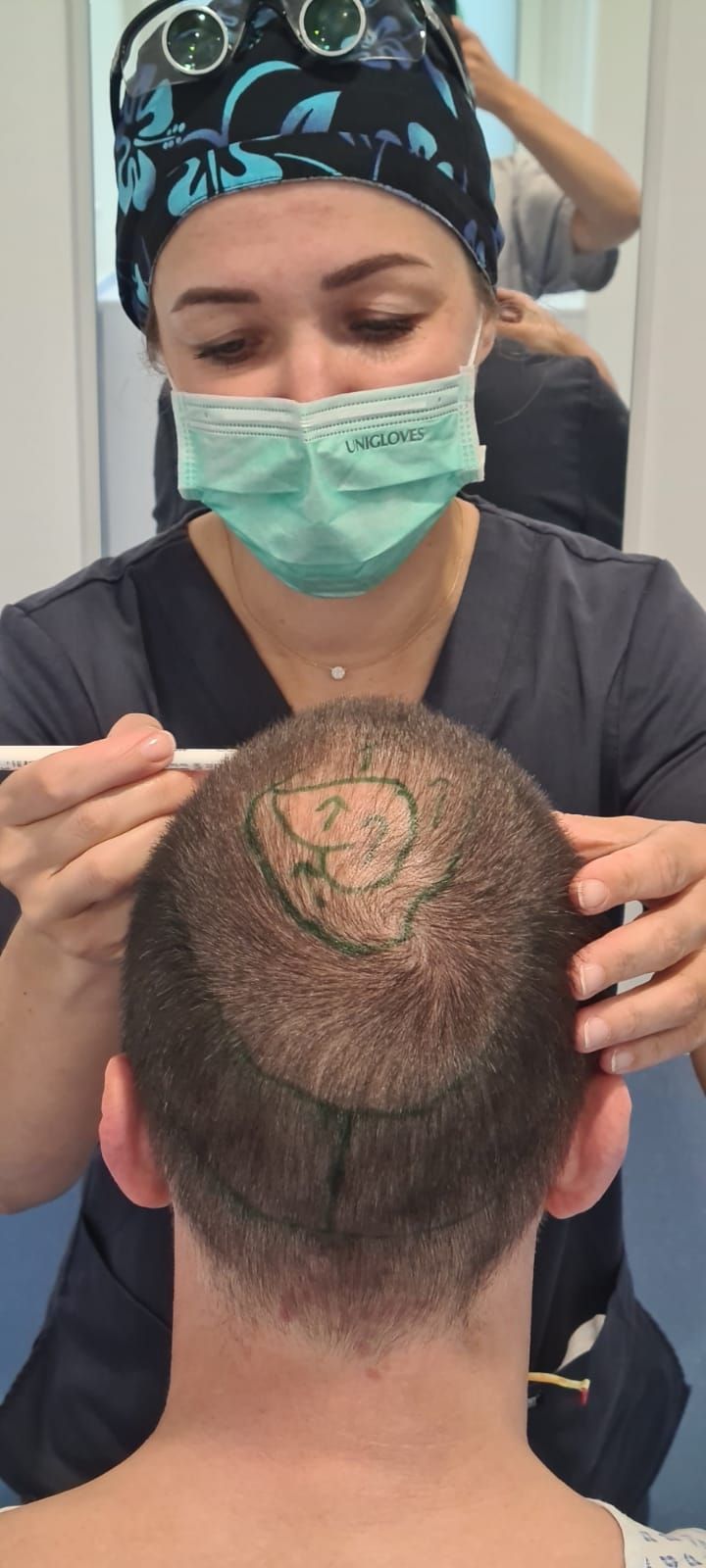 ◉ Rasur: Vollrasur, bei Geheimratsecken auch Teilrasur (Spenderbereich) möglich